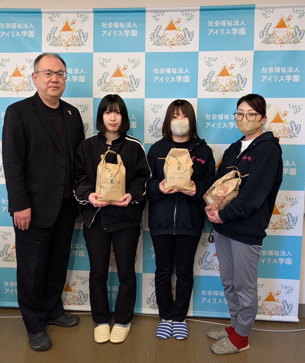 令和8年2月17日(火)に株式会社「エボリューション」代表取締役 唯木勉さま、カーブス(福島南中央、リオンドール鎌田、南福島)のスタッフの皆さまが来園され、子どもたちにお米他多くの食料品の寄贈をいただきました。美味しくみんなでいただきます。毎年のご寄贈誠にありがとうございます。