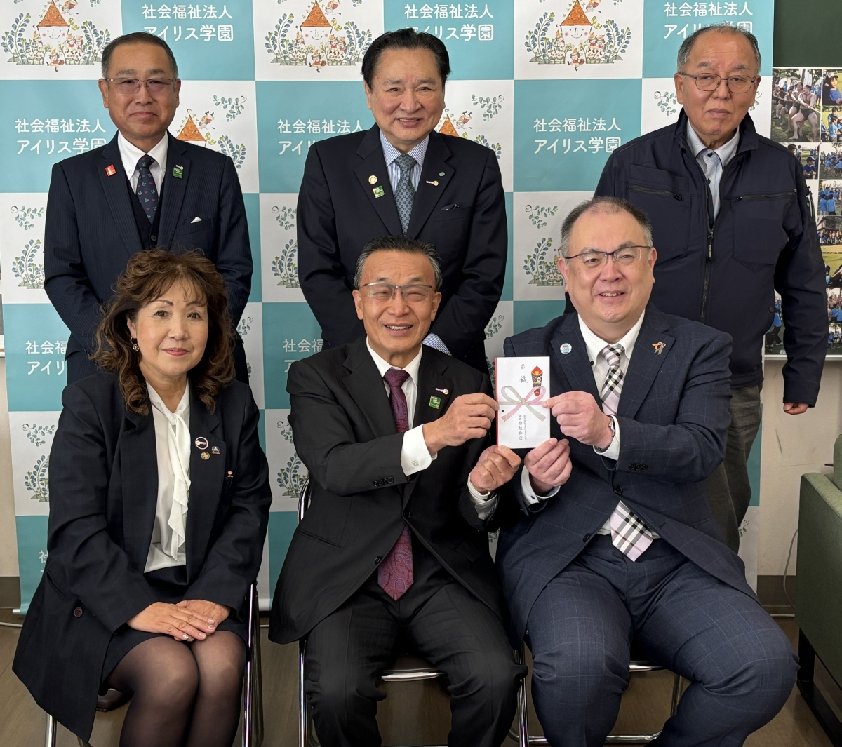 菊地和弘会長(着席中央)他、伊藤弘子幹事、河野忠社会奉仕委員会委員長、鈴木光一ロータリー財団委員会委員長、菅野良二奉仕プロジェクト委員会委員長が同行されました。ありがとうございました。
